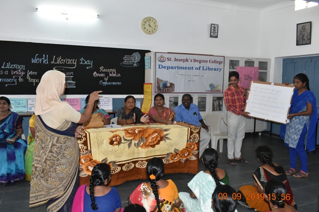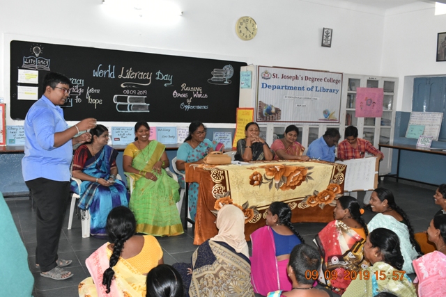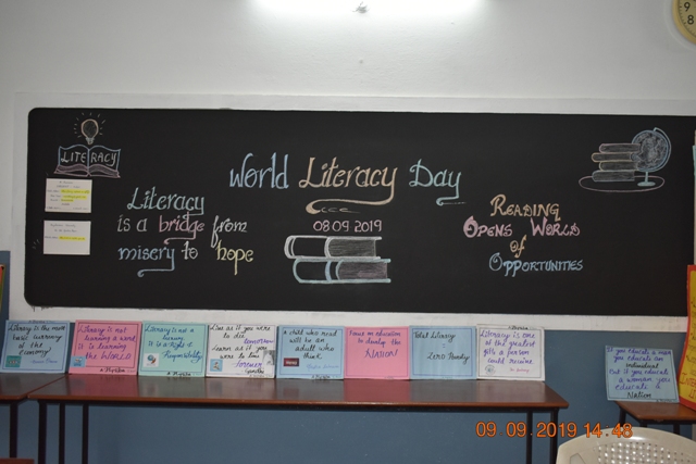 As a part of this event, a message oriented article on World Literacy Day is presented by the student in the morning assembly. Relevant slogans and placards are displayed in the library for the visitors. An awareness programe is conducted even for the service staff that day about prominence literacy. Message was conveyed by the director of the college, principal and students who spoke about the literacy benefits such as ignorance, health, malnutrition etc as the literacy improves all aspects of life.